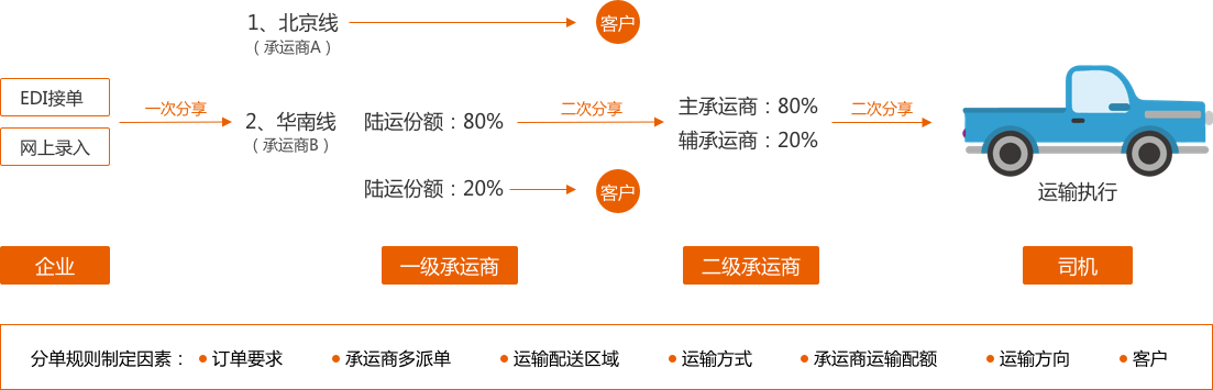 提供多承运商协同作业平台,适应中国运输的多级派单